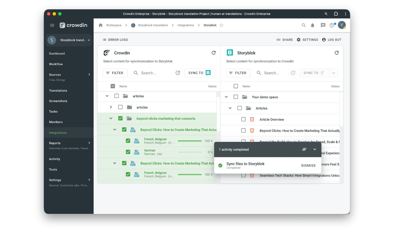 β Click Sync to Storyblok to instantly publish the localized versions.