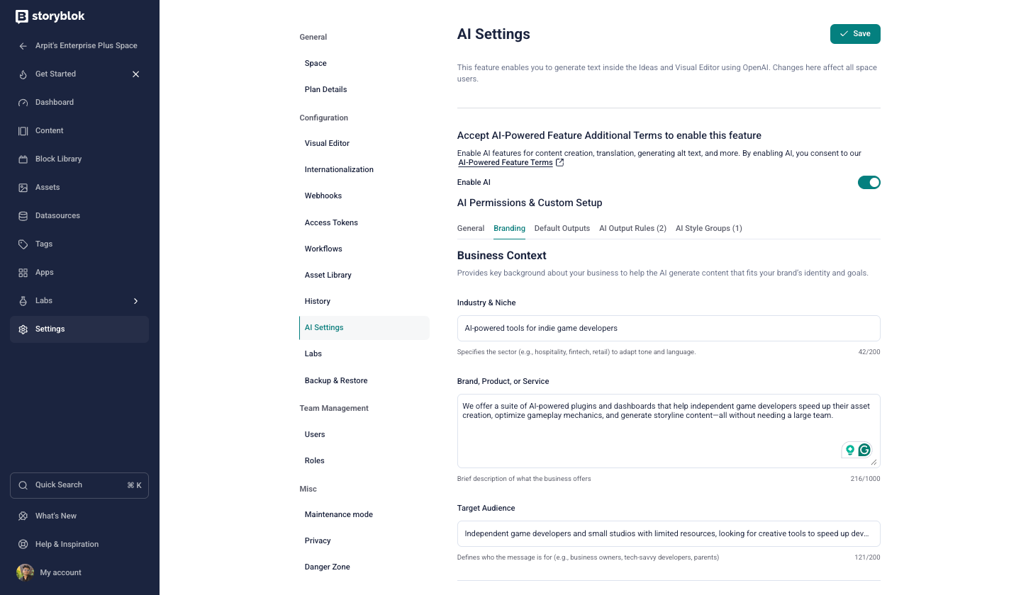 Section titled “AI Branding”AI Branding provides style customizations for AI output.