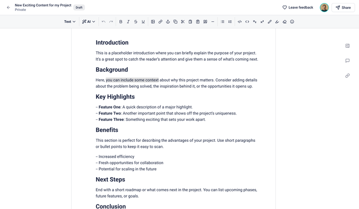 An idea is an internal document where your team can brainstorm, edit, and comment in real time.