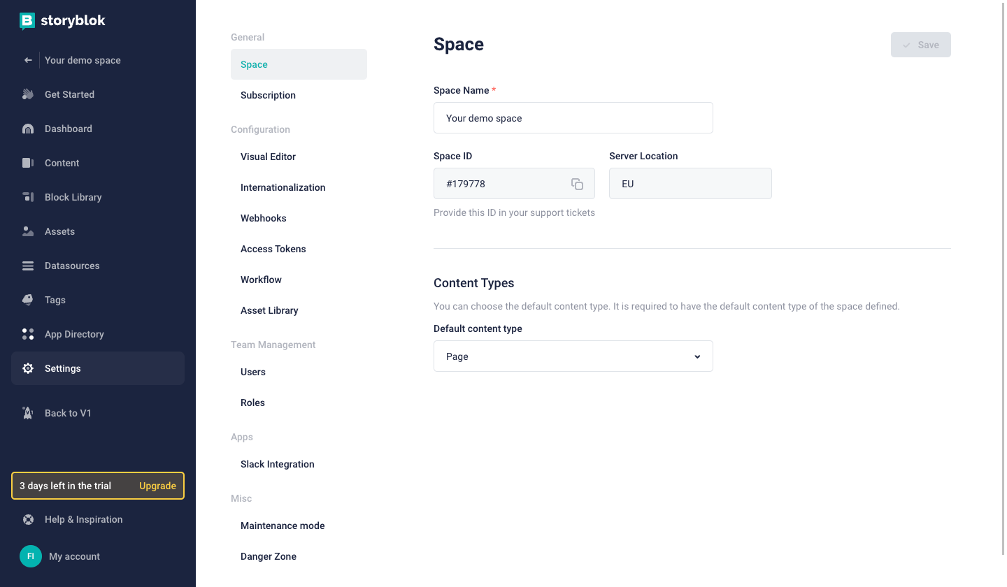 Getting space ID in Storyblok