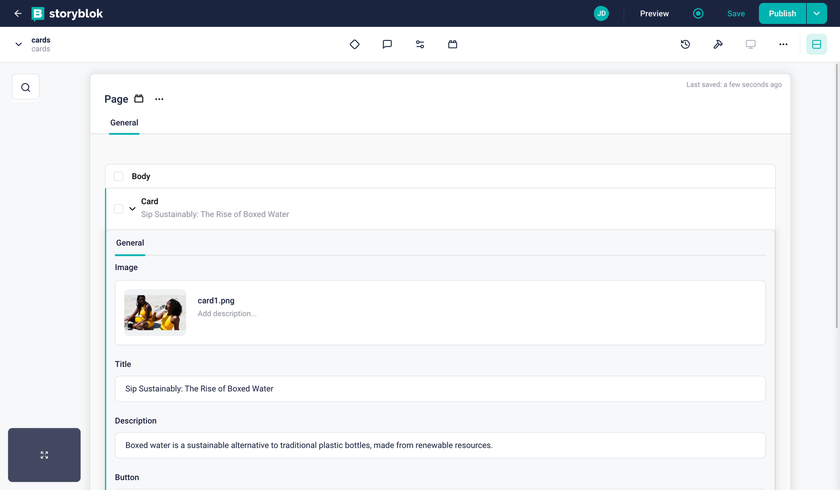 In this example, I will be using two major components for displaying content from Storyblok: Banner and Card. Obviously, you can use more, but in this case, I wanted to show the basic usage that you can just copy and use on your website.