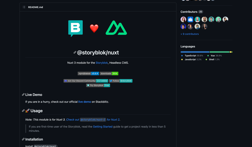 In this article, I will be using the @storyblok/nuxt module that works great in Nuxt ecosystem.