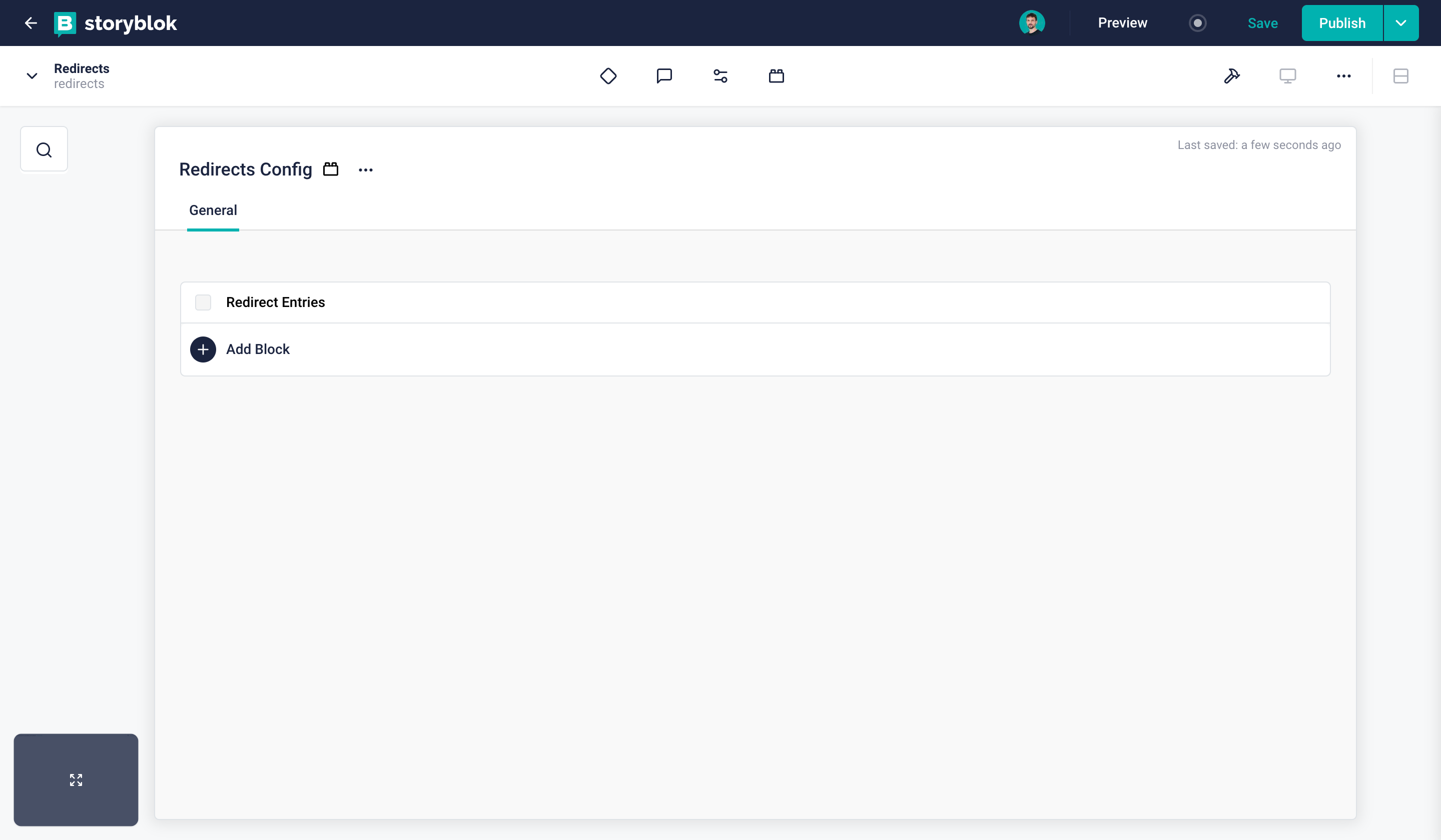 In order to manage all of our redirects conveniently, we can use a single story that stores all of the relevant information. This approach has the additional benefit of only requiring a single API call later when implementing the data in a frontend framework.